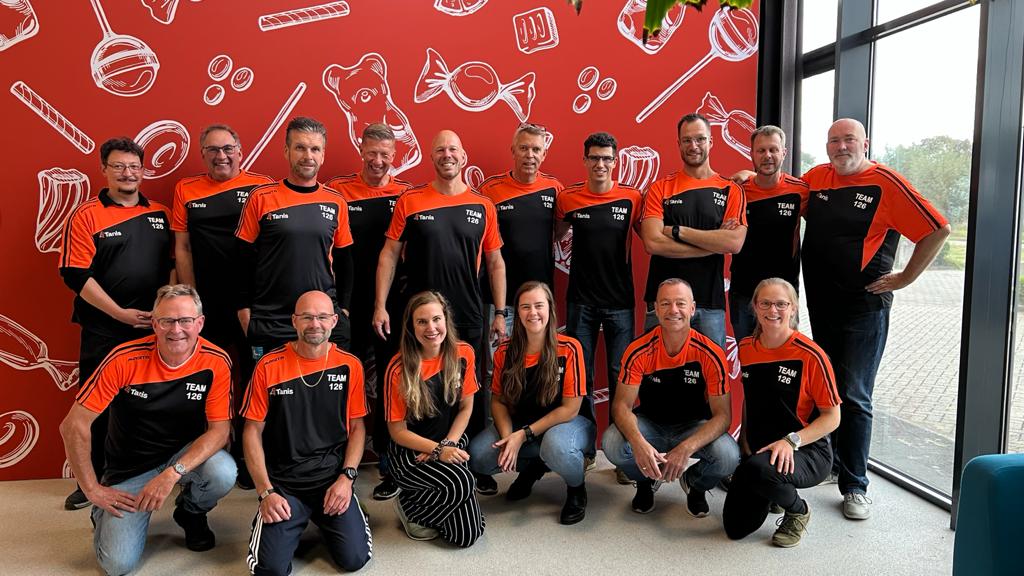 Hoewel we eerst wel allemaal negatief waren was de uitkomst daardoor wel positief en gingen we op weg naar het mooie Oosterhout om te verzamelen bij onze nieuwe (hoofd)sponsor TANIS Confectionery. Met twee enthousiaste teamleden in ons midden, Maartje en Dennis, is de connectie met deze sponsor snel gemaakt en waren en zijn we als team enorm verrast met de kleding (in de juiste oranje RAL-kleur) en de krachtige uitstraling die natuurlijk past bij TANIS waar de kernwaarden betrokken, verbonden en vindingrijk zeker ook van toepassing zijn op ons team.