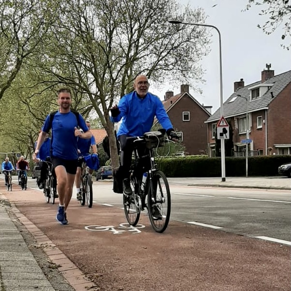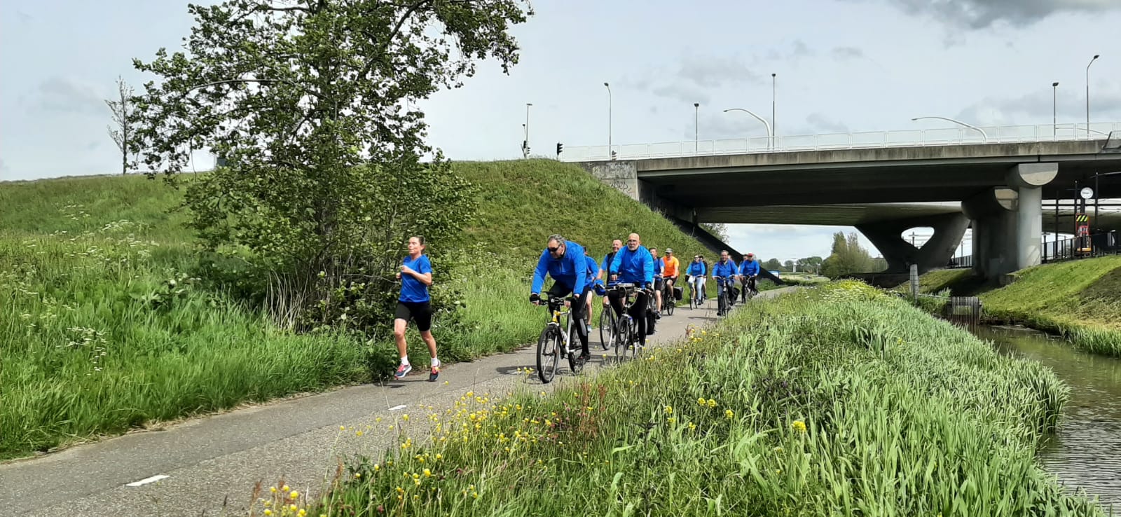 Na de bemoedigende woorden van onze captain Emo vertrokken we in twee groepjes voor de eerste 16 km. Het weer was goed (beetje winderig) maar heerlijk om weer met zijn allen op pad te zijn. Veel bekende gezichten met hier en daar een nieuwkomer. Zo konden wij Carl verwelkomen als nieuw lid van de ondersteuningsploeg, Dennis als fietser (maar vandaag actief loper) en Constant die meegaat als fietser maar ook nu de hardloopschoenen aan had. Daarnaast zaten ook oude bekenden Ronald (nu fietsen maar straks weer loper hopen we), Kim (één van de twee masseurs) en chauffeur Hans1 op de fiets. Dus over multi-inzetbaarheid gesproken: dat komt wel goed met dit team.Het rondje Haarlem was een fraaie tocht: mooie fietspaden zonder al teveel ‘doorgaande wegen’ langs pittoreske plaatsen zoals Haarlemmerliede, Spaarnwoude, Santpoort en Bloemendaal. Dit betekende wel voor de navigerende fietsers dat ze bij de les moesten blijven om bijtijds af te slaan. En dat ging in bijna alle gevallen helemaal goed….